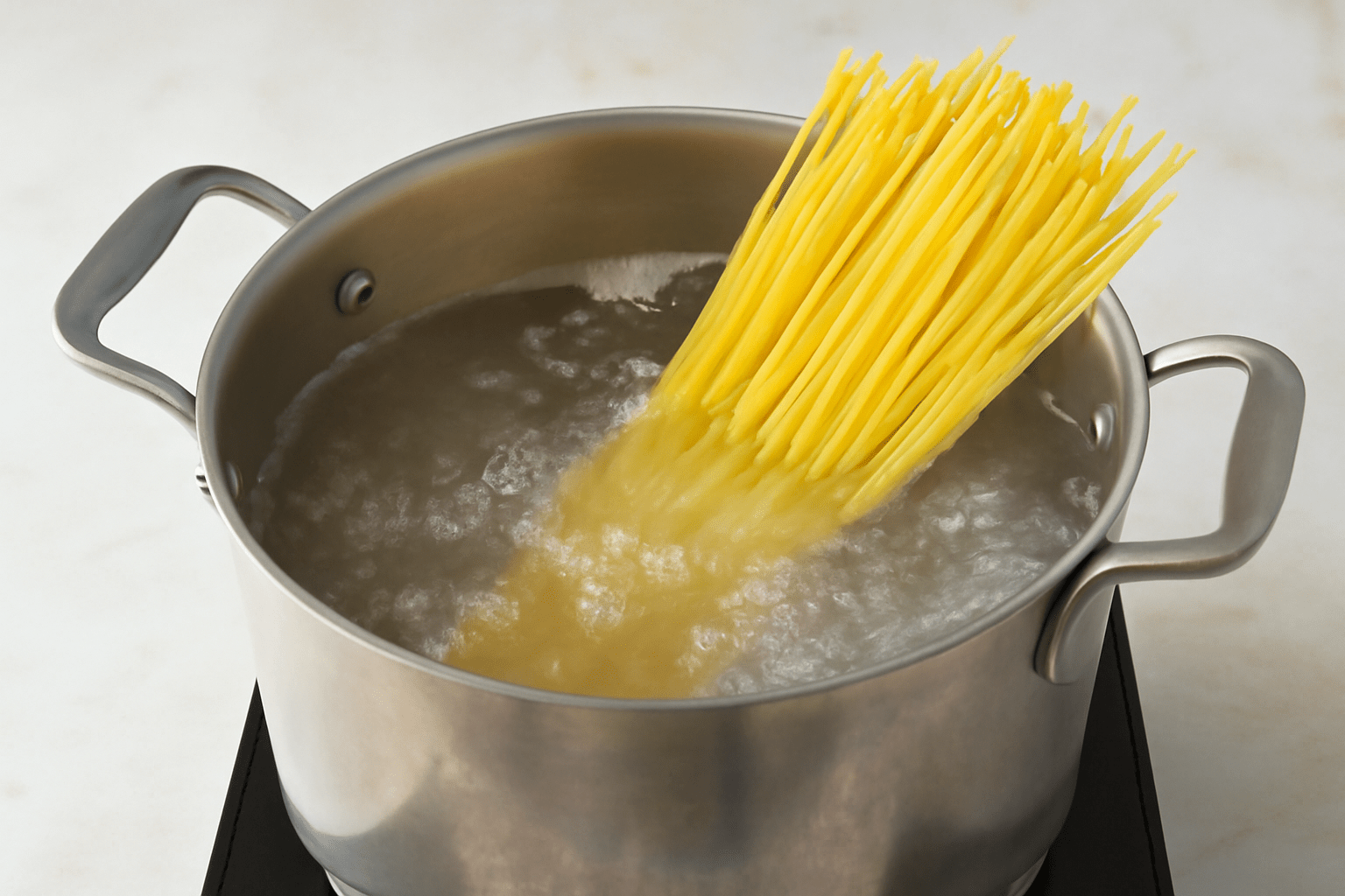 Start by boiling a large pot of salted water. Add the pasta and cook according to the package directions until al dente. Drain and set aside, reserving a cup of pasta water.