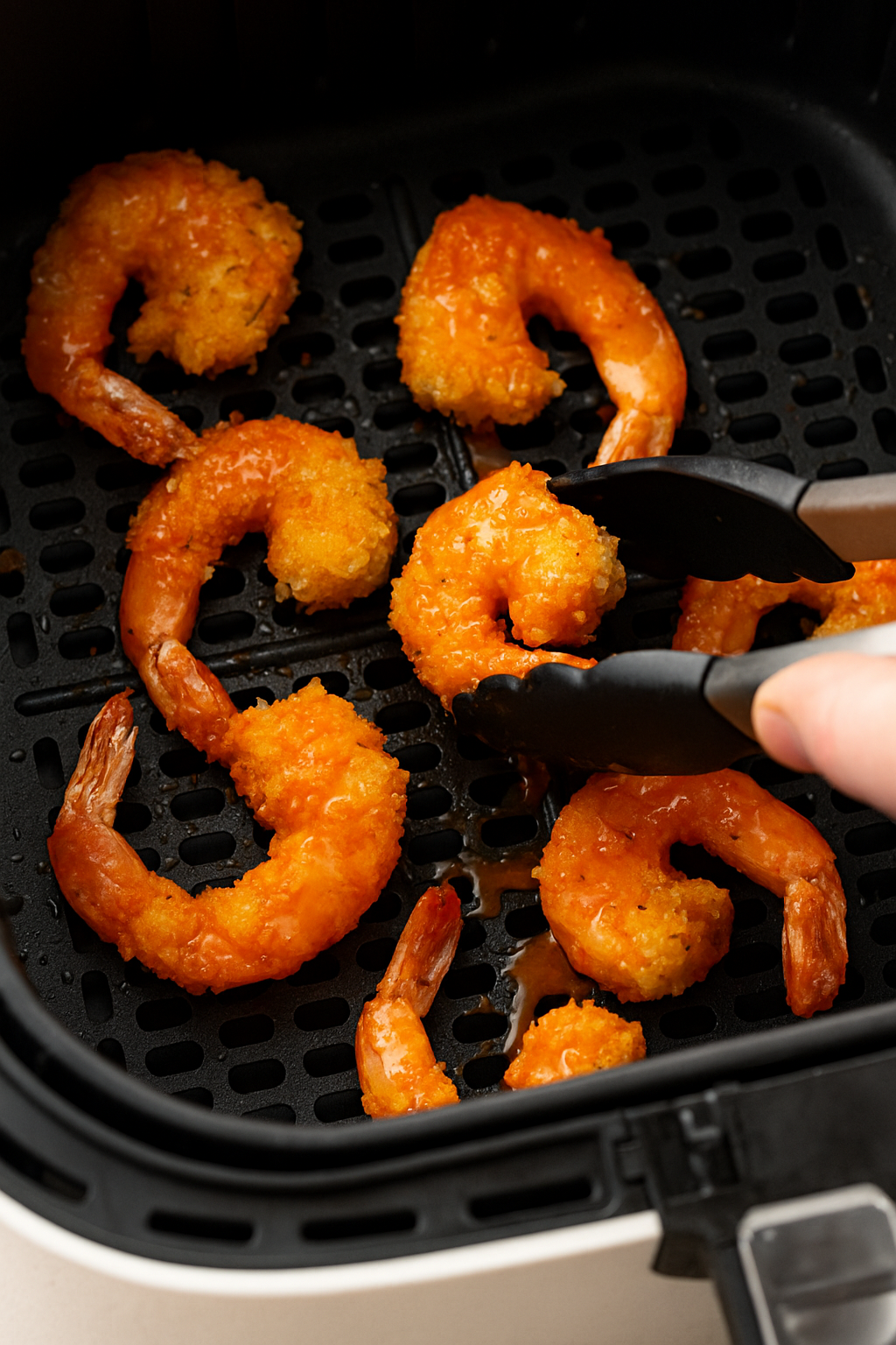 Air Fry: Preheat your air fryer to 400°F (200°C). Lightly spray the basket. Arrange shrimp in a single layer, spray tops with oil, and cook for 8–10 minutes, flipping halfway until golden and crispy.