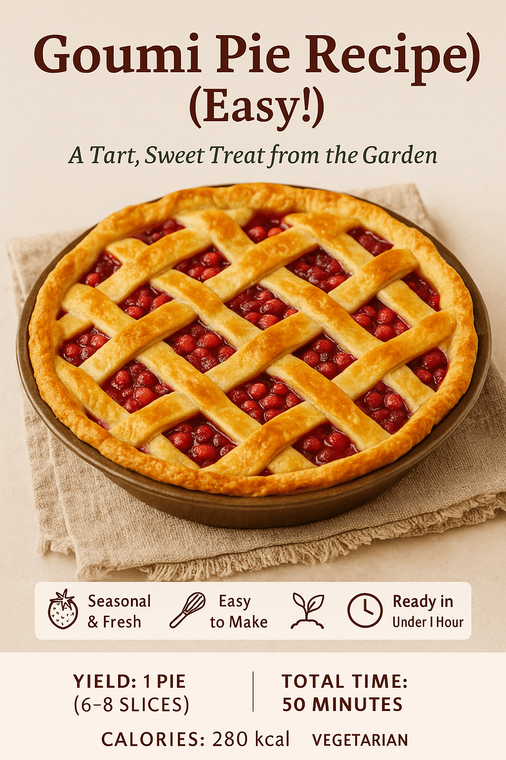 This easy goumi pie recipe is perfect for those new to baking or simply short on time. It comes together in under an hour and lets the natural flavor of the berries do the heavy lifting. Whether you’ve harvested fresh goumis from your backyard shrub or found some at a local farmer’s market, this pie is the best way to show off your foraged find.If you’ve got your hands on goumi berries—those ruby-red, tangy little gems—you’re in for a unique pie that’s equal parts tart, sweet, and wholesome. Goumi berries are often overlooked, but when baked into a golden pie crust with a touch of sugar and lemon, they shine with a flavor that lands somewhere between a sour cherry and a pomegranate.